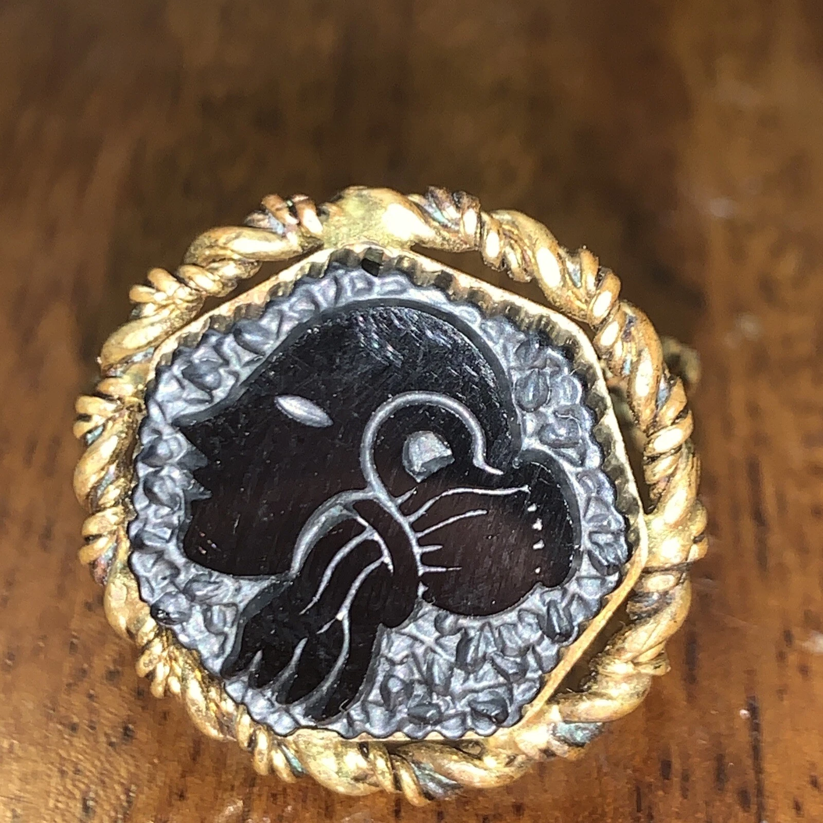 Vintage Black Intaglio Cameo Ring Size Adjustable West Germany.