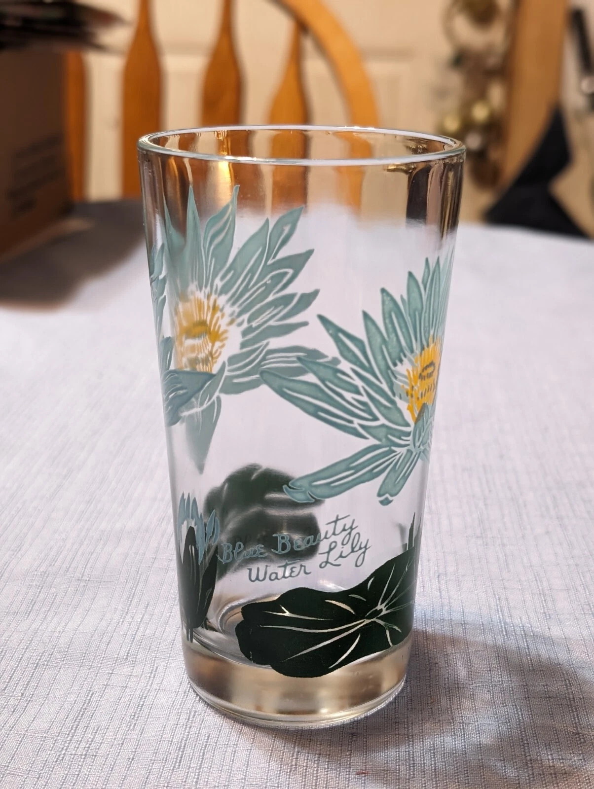 Vintage Boscul Aqua Blue Beauty Water Lily Peanut Butter 5″ Drinking Glass