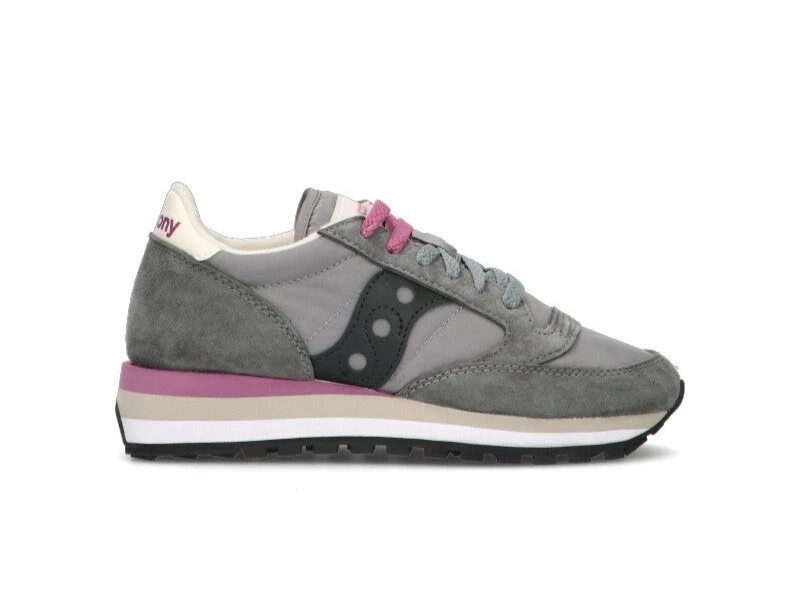 SAUCONY – JAZZ TRIPLE Sneaker donna grigia in pelle scamosciata e tessuto. Realizzata con una combinazione di nylon e pelle scamosciata, questa sneaker è leggera, resistente e facile da abbinare con qualsiasi outfit, dal casual all’informale.