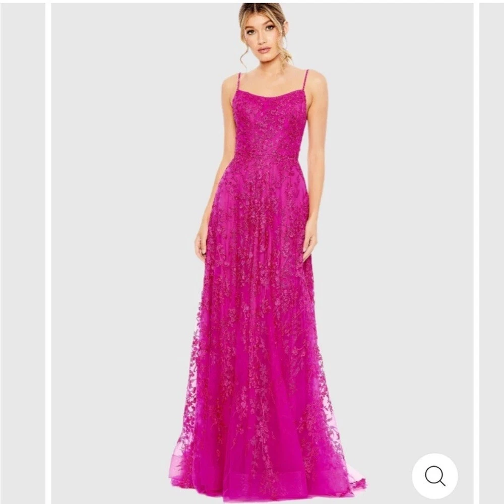 Mac Duggal Mac Duggal New FLORAL APPLIQUE CAMI A LINE GOWN Fuchsia Pink 2