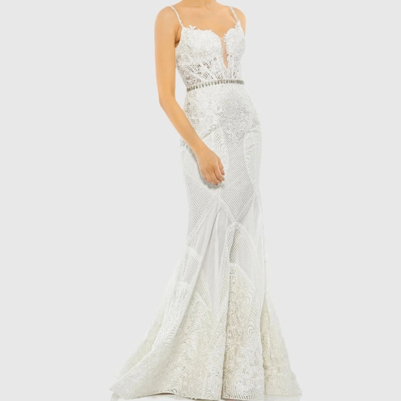 (127) ❤️ BNWT MAC DUGGAL Embroidered Sleeveless Plunge Neck Trumpet Gown #79082