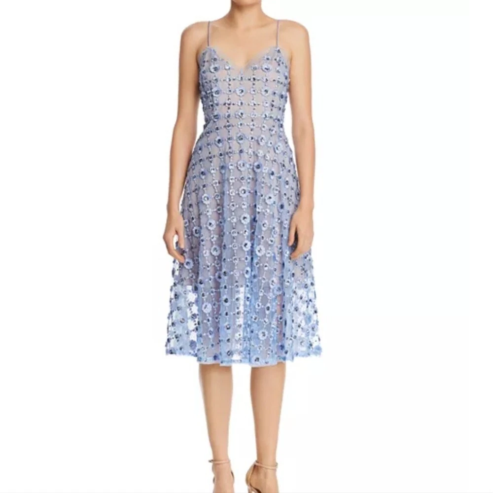 Allover 3-D sequined-floral appliqués