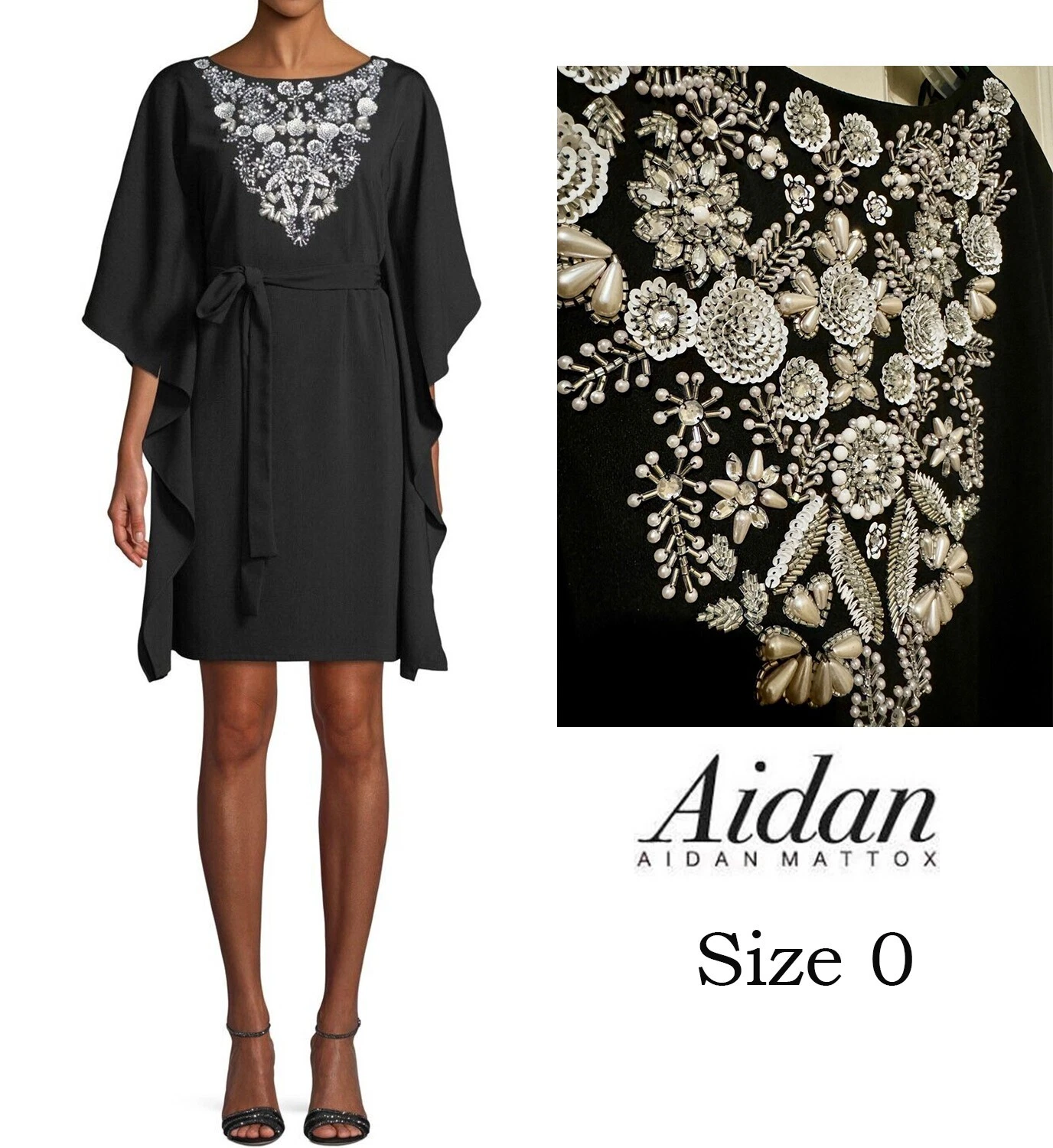 NWT Aidan Mattox Women’s Embellished Black Kaftan Dress – Size 0