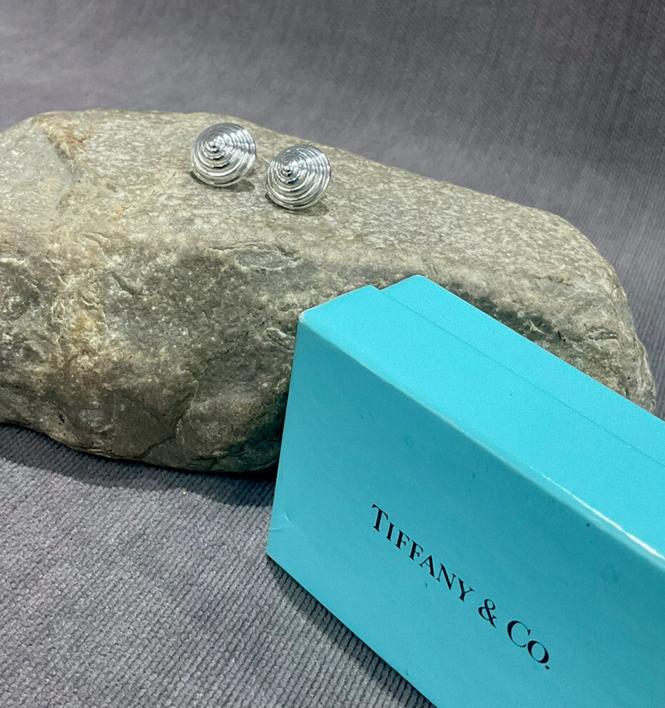 You are viewing a pair of TIFFANY & Co. Sterling Silver ladies Cone Swirl stud earrings.