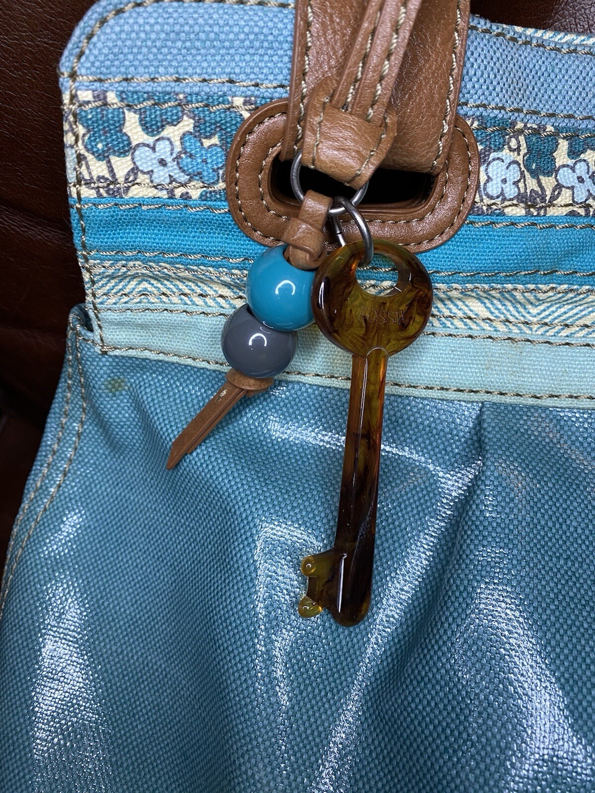 Fossil Turquoise Blue Aqua Distressed Key Per Handbag Purse Coated Canvas NWT