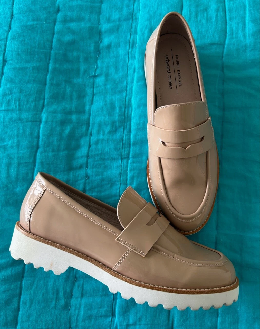 Gorgeous Filippo Raphael/ Edward Meller nude patent leather loafers